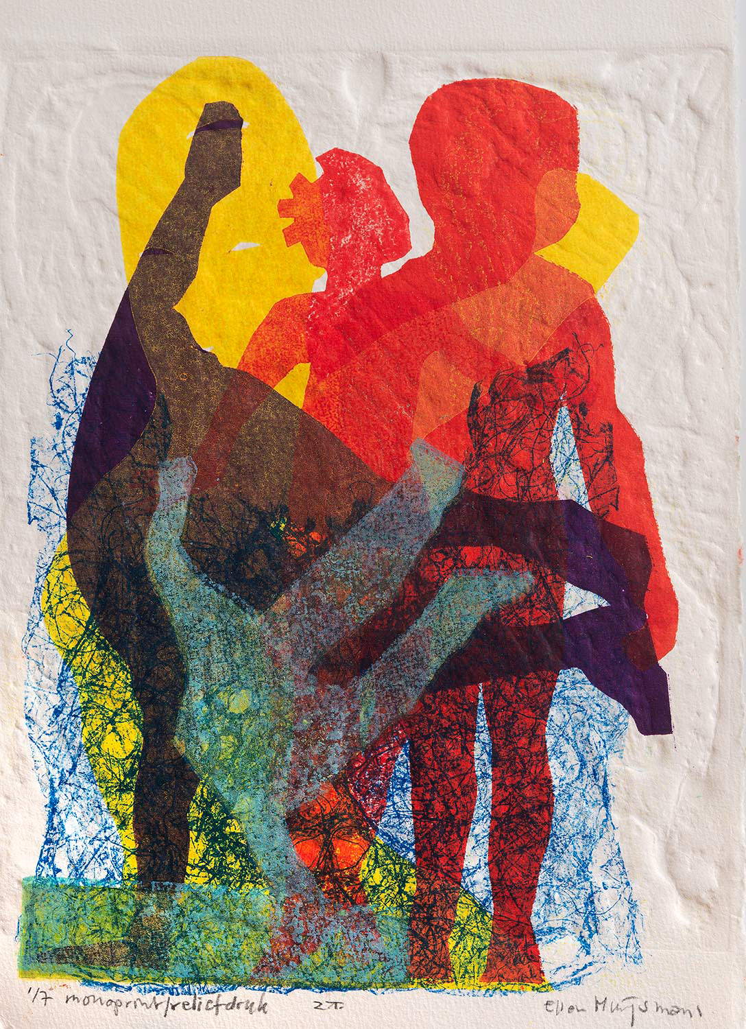 Bij het maken van grafiek heb ik een voorliefde voor lithografie, reliëfdruk en monoprint. Ik experimenteer daarbij graag op verschillende manieren met materiaal, vorm, structuur en kleur.